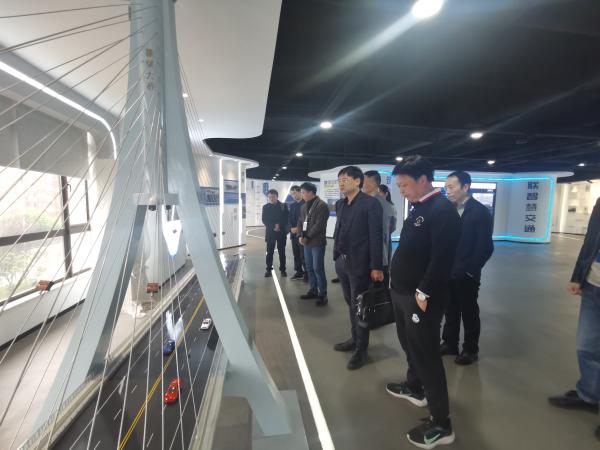 方玉明一行在通慧集团总经理汤月恒的陪同下,先后参观了通慧技术展厅、VR实验室、赣东大桥监控平台,对通慧的发展历程和企业在交通结构物健康监测、公路机电监理、专业工程软件开发、智能化系统集成、智慧交通等方面的新技术、新成果有了进一步的了解。