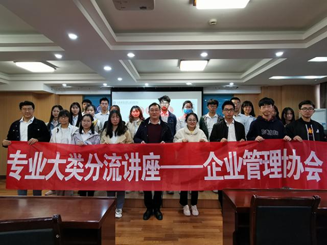 接下来进入提问环节,同学们踊跃提问,老师为他们一一解答,并结合现在的社会形势对他们的困惑进行了拓展分析。最后,主讲嘉宾、企业管理协会工作人员进行合照,本次专业分流讲座圆满结束。