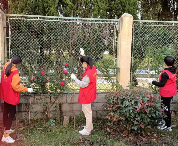 在花卉护理过程中,志愿者们坚守职责,认真对待每一块草地,无论是长满小刺的花枝,还是枝叶横生的绿地,志愿者们都细心处理,认真呵护,在志愿者们的共同努力下,相互缠绕的月季花枝被有序固定在栅栏上,绿地草坪也变得美丽整齐。志愿者们全身心地投入到护理中作之中,有志愿者表示,虽然在花卉护理活动中很辛苦,但当看到倾斜的月季花枝向阳生长,杂乱的绿地春意盎然时,内心是无比自豪和满足的。