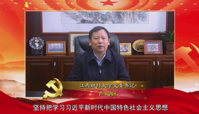卢福财在视频中介绍道,学校党史学习教育在总体思路上把握三个贯穿、三个结合。坚持把学习习近平新时代中国特色社会主义思想贯穿始终,把学史明理、学史增信、学史崇德、学史力行贯穿始终,把学党史、悟思想、办实事、开新局贯穿始终。聚焦“务求实效、走在前列”的目标定位,把党史学习教育同推动“十四五”开好局、起好步,同统筹疫情防控和学校事业发展,同传承红色基因、落实立德树人根本任务紧密结合,努力把江财打造成最讲党性、最讲政治、最讲忠诚之地。