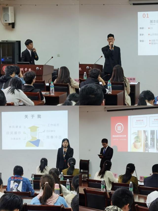 首先,主持人进行开场致辞并向在场的评委介绍打擂的相关规则,随后,参选选手按照抽签顺序依次上台发言,利用精美的PPT从个人学习、社会实践和公益活动等多方面介绍自己在大学的所思所想、所获所得以及对未来的憧憬和向往。其中一位选手“参与‘自强之星’评选是对今天的鼓励、明天的勉励、以后的奖励。不论结果,过程会给予我安慰。我定会怀着一颗永不言败的心继续走下去,不负青春不负己。”的一番话更是赢得在场师生的一致好评。