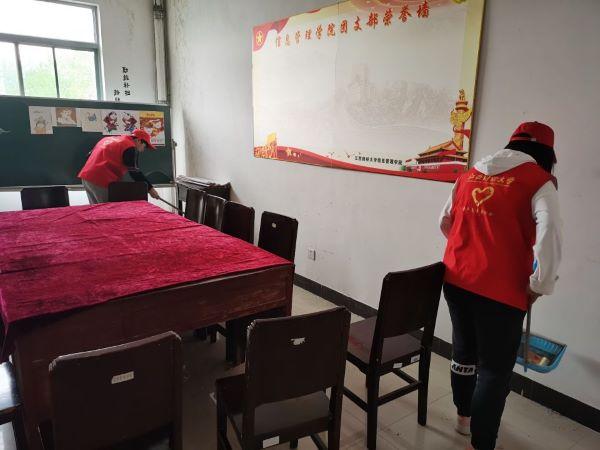在线上复试开始前,志愿者们提前到达指定会议室进行收拾整理,为复试者提供一个安静整洁的准备环境。另外,在复试过程以及部分教室使用高峰期间,志愿者们帮助有需要的学长学姐在门口进行轮岗工作以免发生突发状况,确保没有学生突然闯入打扰复试进程,帮助他们能沉心、放心地专注于复试,取得一个满意的成绩。在复试完毕后,志愿者们做好后勤工作,将用过的教室、会议室地面进行清扫,桌椅摆放归至原位,将垃圾带走。