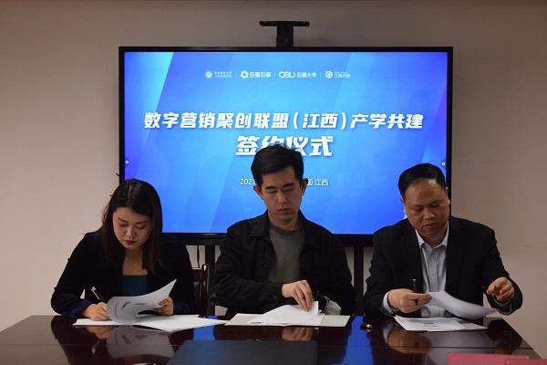 4月18日下午,工商管理学院与北京巨量引擎网络技术有限公司、江西仟得文化传播有限公司数字营销聚创联盟院企合作签约仪式在工商大楼503会议室举行。工商管理学院院长胡海波,党委书记黄文德,MBA教育学院副院长金欣,工商管理学院党委副书记周海燕,副院长陆淳鸿、谌飞龙,企业方代表北京巨量引擎综合运营策略总监杨文谦、高级经理魏畅,江西仟得文化传播有限公司政旅行业总经理张小雨、总经理助理郭弓出席了本次签约仪式。