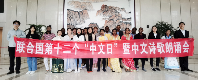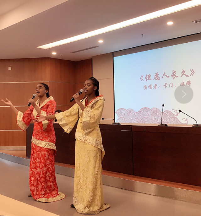 在欣赏完集端庄优雅于一身的汉服后,开始进入到活动第二项:“以诗会友,共赏佳篇”中外学生诗词朗诵环节。