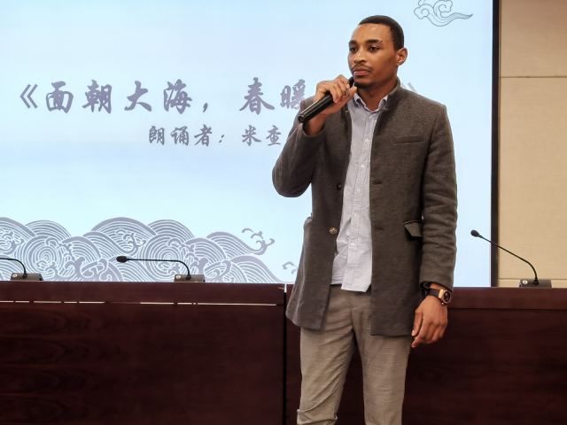 接下来,留学生安娜朗诵了宋词辛弃疾的《青玉案》;米查朗诵现代诗歌《面朝大海,春暖花开》;卡门和瑞纳带来了宋词演唱《但愿人长久》;马超朗诵了现代诗歌《我要为少男少女们歌唱》。