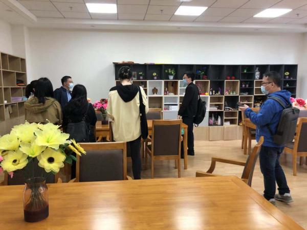 参访调查的第一项内容是参观南昌市西湖区社会福利院。在福利院社会工作部负责人胡奇艳的带领下,师生参观了该院老年人能力评估中心、失能失智老人生活区、配药室、医务室、娱乐室、图书室等。在参观的过程中,师生们不时就护理员招聘、医养结合、老人护理、适老化空间设计与改造等问题向工作人员咨询和学习。随后,社会福利院院长朱平秋就社会福利院的发展历史、运营规模、运营理念等进行了介绍,就运营中存困惑与参访师生进行探讨。