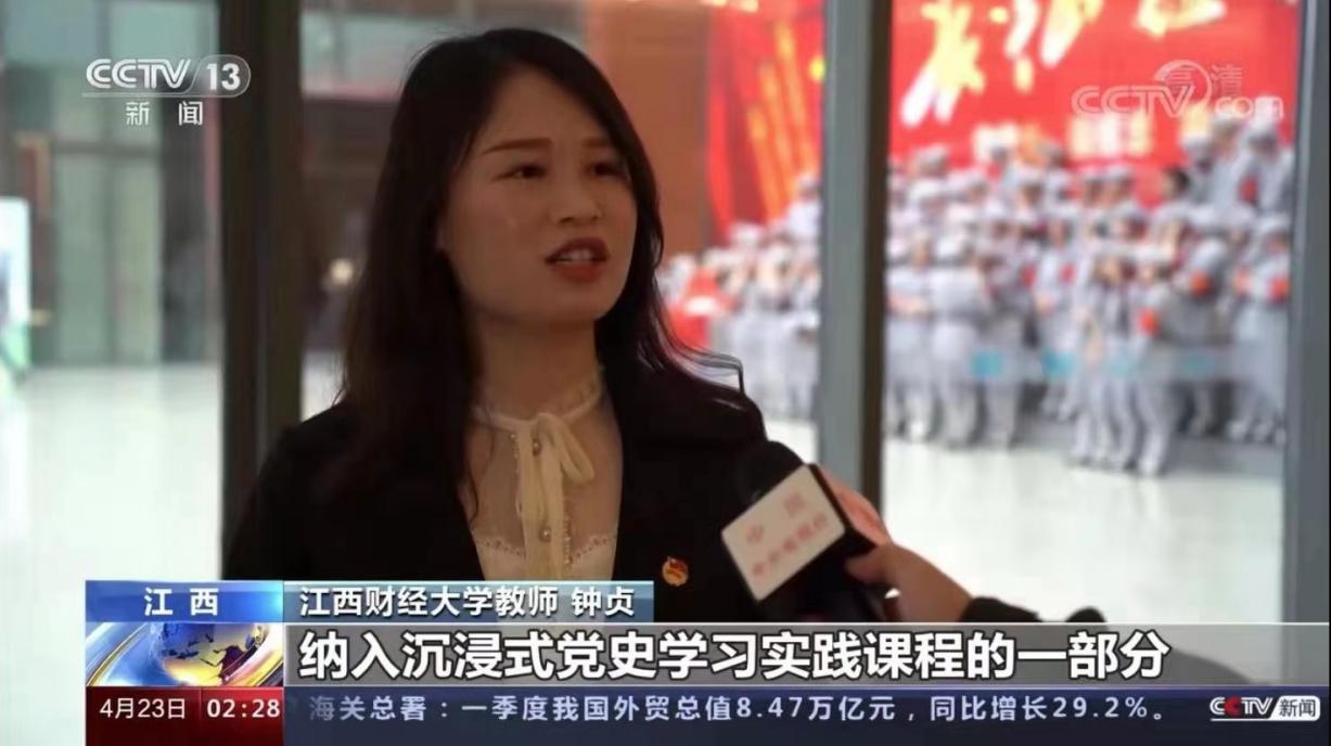 近日,中央电视台13套《新闻直播间》的“学党史强信念跟党走”栏目以“高校举办歌唱比赛传承红色精神”为题,对在江西省兴国举办的全省高校青年学生庆祝中国共产党成立100周年“长征组歌”歌唱比赛进行了报道。我校红星艺术团参加了此次歌唱比赛,青年教师钟贞接受了中央电视台的采访。