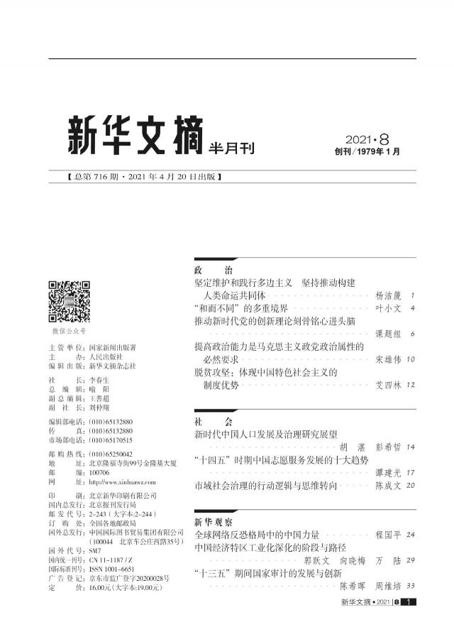 近日,江西新时代社会治理研究中心主任、博士生导师陈成文教授发表在《甘肃社会科学》2020第6期的理论文章《市域社会治理的行动逻辑与思维转向》先后被《新华文摘》(2021第8期)、《中国社会科学文摘》(2021年第4期)全文转载。