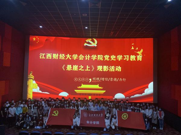 为深入开展党史学习主题教育活动,引导教工学生学史明理、学史增信、学史崇德、学史力行,会计学院党支部于5月4日组织全院师生党员在绿地金逸影城观看爱国主义题材电影《悬崖之上》。学院党委书记黄雨虹、党委副书记肖安生、副院长周冬华、会计系党支部书记黄波等9名教工党员、70余名学生党员和30余名团员参加了此次观影活动。