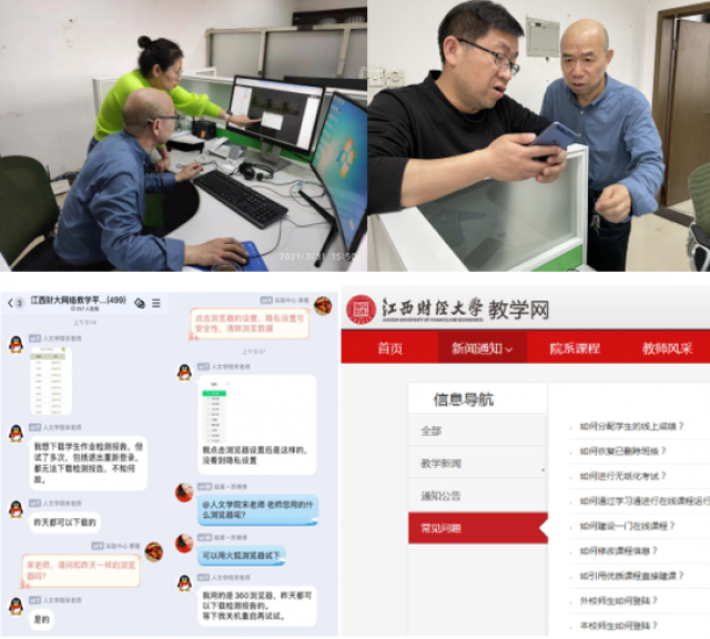 为促进服务教学活动真正落到实处,4月9日上午,计算机实践教学中心召开科以上干部大会,对如何帮助广大师生更好使用网络教学综合服务平台进行研讨。一是加强网络教学综合服务平台教师QQ群管理,及时为全校教师提供实时在线答疑;二是梳理近期网络教学综合服务平台师生使用常见问题,制定常见问题一问一答;三是加强网络教学综合服务平台的推广使用,为统计学院网络直播讲座做好网络测试以及技术指导,确保直播过程顺利完成。