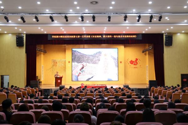 5月10日下午,为推动党史学习教育走深走实,做好新民主主义革命的党史专题学习,按照现代经济管理学院党史学习教育计划安排,学院邀请八路军后代、关工委宣讲团成员王军开展题为“长征精神、薪火相传——我与重走长征路的故事”党史学习教育专题讲座。学院党委书记肖建文、党委副书记邱晓平与329名入党积极分子聆听了王军老师讲述他与长征路的那段不解之缘,党委组织部部长兼党校校长孙瑛主持讲座。