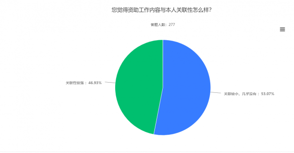 截至5月11日晚,资助服务部共收集到277份有效问卷。调查内容主要包括学生对家庭经济困难认定、国家三金、自强之星评选班级民主评议情况等方面了解程度,并收集同学们对学院资助工作的相关意见。