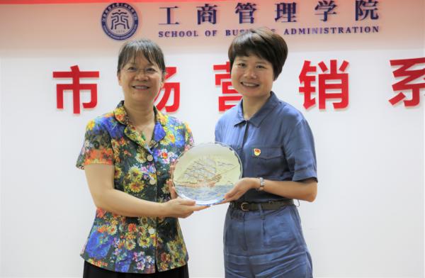 周海燕对卫海英一行的到来表示感谢,并向来宾赠送礼物。期待双方共同推进高校党组织跨校合作,贯彻落实立德树人根本任务,推进高校办学模式和人才培养模式改革的创新途径。(文/工商管理学院大自委 胡佳燕 图/工商管理学院 廖芊 编辑/毕俊如 审核/姜莹 赵旻)