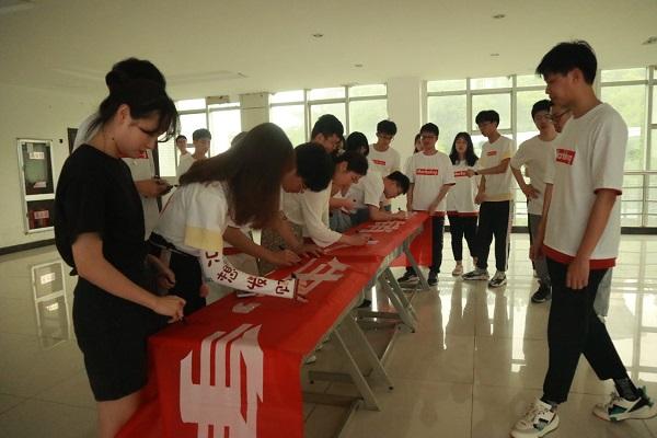 活动结尾,社团各部门依次在十周年庆典的横幅上签下姓名留作纪念。