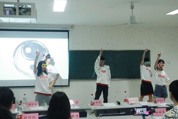 “就在这儿就在这儿。”庆典以宣传部的说唱《宇宙警备队》开场,律动的音乐搭配嘻哈的跳动舞步,现场一片欢声笑语。此次年庆活动以游戏搭配表演,随后开展的“击鼓传花”延续了说唱的欢乐,场内气氛也在紧张的传花过程中达到高潮,被选取的成员或唱歌或跳舞,以才艺结束第一场游戏。办公室带来的配音秀《欧耶吧》则以表演人员生动形象的配音及幽默风趣的台词引得观众笑声不断;公关部展示的《太极三章》以青年的身姿带领全体成员共同领略中华传统之美及复古时尚之风;小品《信使》《创造营销达人》通过对社团日常活动的改编,展现出社团的青春风采。最后,全体社员齐唱社歌,“如今我们在此相遇,辉煌就在手里,如今我们在此相识,就争做营销达人”,此间相遇,年华正好。