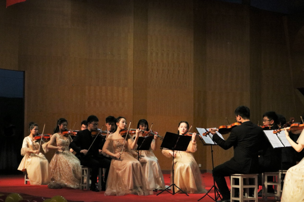 在全体小提琴队员合奏的《卡农》中,音乐会圆满落幕。整场音乐会中西并融,精彩迭出,用音乐进行文化交流,以凡世之音奏响盛世华章,共同礼赞伟大的党和祖国。