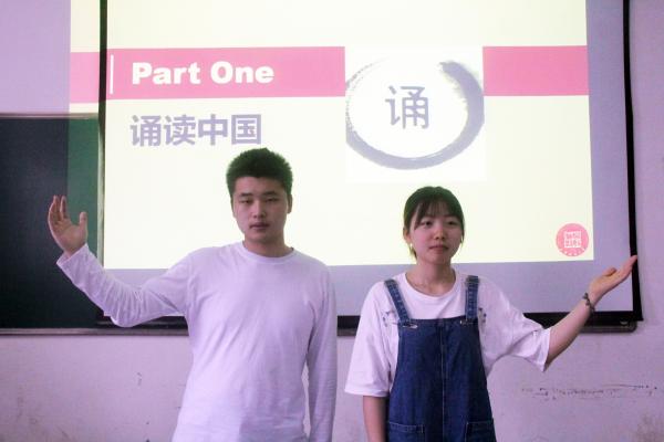 “诵读中国”共有五支队伍参赛,每支队伍展现形式各异。第一组“圆圆滚滚队”配合背景音乐,声音有强有弱。即使只有两位队员,但其慷慨激昂的朗诵风格,呈现出了浪涛般的气势。现场观众时而紧皱眉头,时而绽开笑颜。第二组“惊鸿昱旻队”呈现方式多样,在朗诵期间穿插歌曲片段吟唱以及情景演绎,将疫情期间为社会服务的美德故事生动地展现给大家。