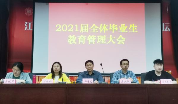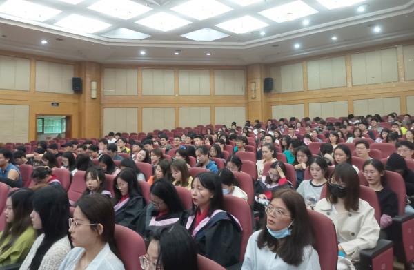 5月17日下午,经济学院于国际报告厅召开2021届全体毕业生教育管理大会,经济学院党委书记邹春发、党委副书记李大晖、学工办副主任万婧怡、团委副书记吴佩芹和辅导员谢尔艾力出席本次会议,全体毕业生参会。