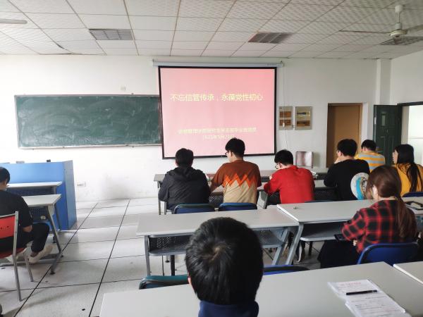 在毕业之际,为深入学习贯彻习近平新时代中国特色社会主义思想,推进党史学习教育入脑入心,充分发挥毕业班党员的辐射作用,5月21日信息管理学院开展了主题为“强党性,共传承”的毕业生党员讲党课活动,全体研究生党员和入党积极分子参加。