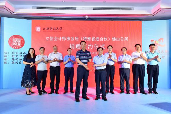 5月22日,立信会计师事务所(特殊普通合伙)佛山分所捐赠签约仪式在广东佛山举行。校党委书记卢福财、副校长袁雄出席捐赠仪式。