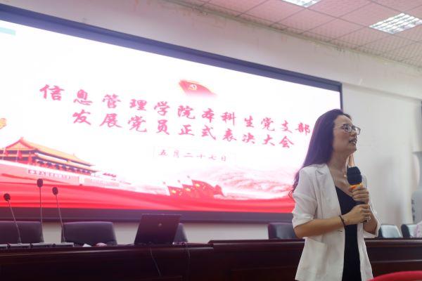 本次发展党员大会为信息管理学院本科生党支部增添了新生力量,夯实了党员队伍建设,对提高党员队伍素质,保持党的生机活力起促进作用。相信各位新发展党员一定会恪守入党初心,勇担使命,以实际行动向优秀党员看齐,努力为党的事业薪火相传贡献自己的青春热血。(文/信息管理学院本科生党支部 何怡栩 图/信息管理学院本科生党支部 编辑/孙玮)