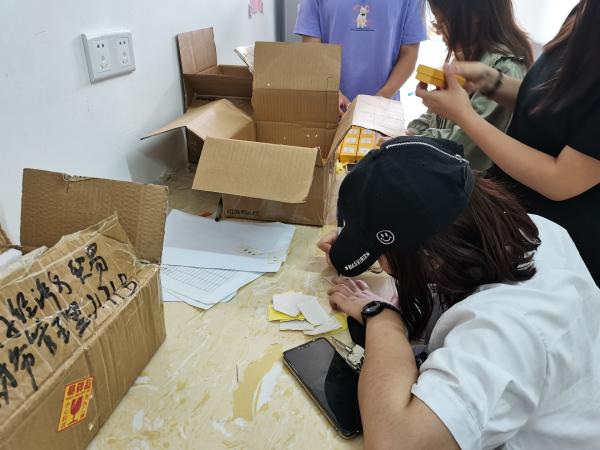 5月30日下午,国贸学院就业部在蛟桥园南区一栋宿舍楼为毕业学子们赠送毕业礼物—刻有学生姓名的江西财经大学专属印章。下午四点,工作人员按照班级将印章分组,各班班支前来积极领取。
