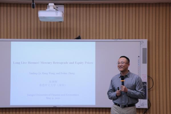5月31日上午,金融学院举办2021年第4期赣鄱金融名家论坛。香港中文大学(深圳)经管学院执行副院长张博辉教授受邀作了题为“Long Live Hermes! Mercury Retrograde andEquityPrices”的学术讲座。金融学院院长桂荷发主持讲座,部分学院老师、硕博士生参加了此次讲座。