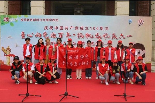 6月1日,外国语学院青年志愿者协会组织学院学生前往蛟桥镇绿地悦公馆,协助悦美社区举办“童心向党迎百年,扬帆远航庆六一”志愿服务活动。