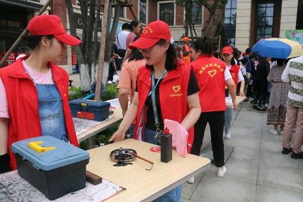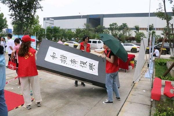 志愿者们在院青协负责人的组织下分配好工作。活动开始前,志愿者们协助主办方搬运活动用品,拉起警戒绳,张贴海报,建造出一个充满童趣的活动场景。