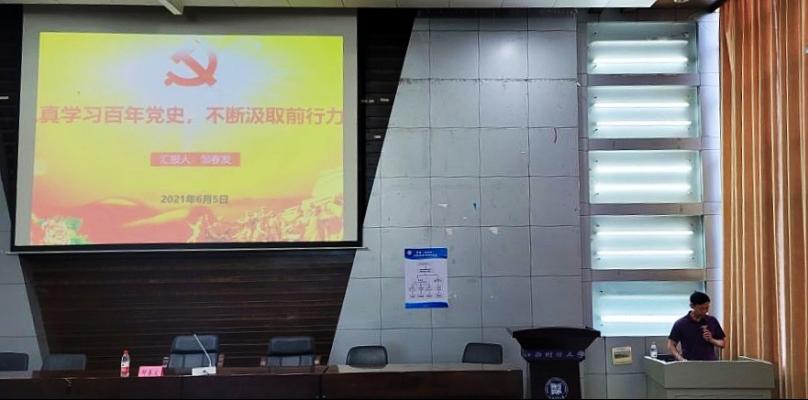 6月5日,经济学院党委书记邹春发在研究生报告厅开展题为“认真学习百年党史,不断汲取前行力量”的党史学习教育专题党课。