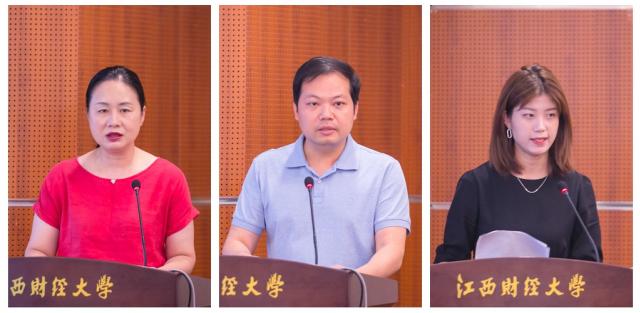 校友工作先进单位代表、会计学院党委书记黄雨虹和法学院党委书记郭海峰,校友工作先进个人代表、国际经贸学院团委书记周妍等单位和个人就校友工作经验进行了分享和交流。