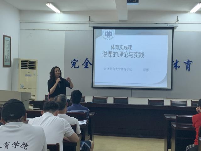 6月16日,体育学院举办“体育说课”系列学术讲座。江西省教育厅教学教材教研室杨涛副主任、江西师范大学体育学院谢彬教授应邀来校。体育学院院长徐旭川、副院长詹新寰,学院师生代表聆听了讲座。