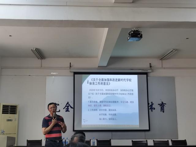 杨涛为师生们讲授了“说课的艺术”。杨涛解读了体育教育相关政策文件。他指出,体育是教育的一部分,体育的重点不在体,而在于育;新时代学校体育,在“享受乐趣、增强体质、健全人格、锤炼意志”四位一体的目标中。杨涛通过《体育之研究》《理想国》,分析了当前体育教师面临教什么、为什么教、怎么教、学生怎么学等困惑,并通过案例分析,结合体育项目的特色,阐释如何将爱国、法治、民主、团结等核心价值观融入到体育课程中。最后,杨涛介绍了说课的原则,说课的步骤及注意的事项,并且给大家带来了如何说好课的经验分享。