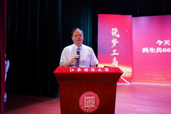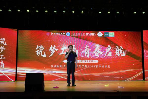 黄文德在典礼上作题为“做勇于担当、开拓进取的新时代青年”的讲话。他向659名毕业生表示祝贺,希望各位同学在毕业后坚定“信而达礼”的理想信念、涵养“敏而好学”的求真精神、践行“廉而知耻”的道德品行、锤炼“毅而弥坚”的坚强品格,努力成为爱党爱国、博闻强识、引领风尚、敢于担当的江财工商人,以江财工商校友为自信,勇敢地踏上新征程,迎接新挑战,开启新篇章,为实现百年江财梦贡献工商力量。