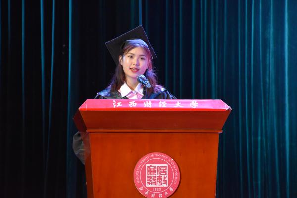 优秀毕业生代表2017级程静仪在发言中对给予自己温暖港湾的父母,培养她成才的老师,陪伴自己的同学们表示感谢。她提到,学校为她指明前进的方向,自己将永远珍视四年中收获的荣誉、度过的美好。