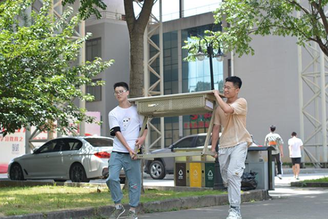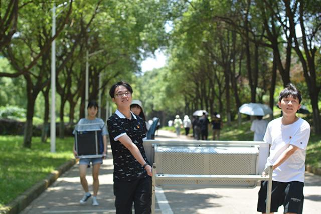 活动伊始,参与活动的志愿者在大学生活动中心门口集合,随后在工作人员的安排下,有条不紊地从活动中心出发,将桌子和椅子搬往体法楼110以及112教室。炎炎烈日下,志愿者们干劲十足,互帮互助,有序搬运桌椅,在校道上留下了劳动的身影,用实际行动展现了信管学子的活力风采,践行为民服务的初心,起到了党员先锋模范的作用。经过志愿者们的共同努力,本次活动共搬运150张桌子以及300张椅子至指定位置,圆满完成了服务活动任务。