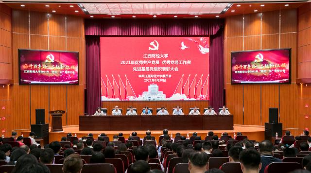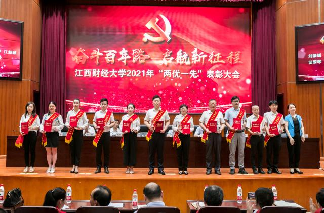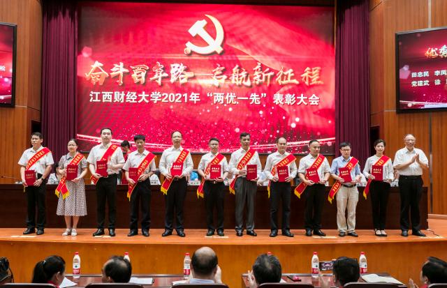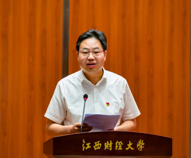 袁雄宣读《中共江西财经大学委员会关于表彰江西财经大学优秀共产党员、优秀党务工作者和先进基层党组织的决定》。