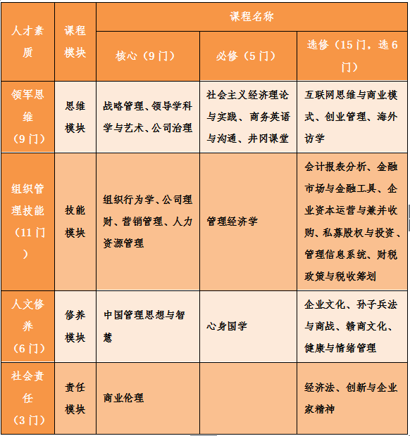 践行“信敏廉毅”校训,立足江西,服务地方经济发展,培养具有领军思维、管理技能、人文素养和社会责任的(成长性)企业领军人才。