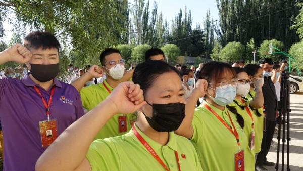 7月23日,服务队走进田野帮助当地维吾尔族同胞种植辣椒,将党史学习教育与民族团结教育相结合,践行“我为群众办实事”及“各民族手足相亲守望相助”。