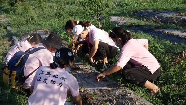 正值当地农忙时节,同学们主动向维吾尔族同胞学习了辣椒种植的相关知识和具体操作,随后分成三组除草、挖坑、栽种、培土。经过同学们与维吾尔族村民们一天的辛勤劳作,终于完成了当天的工作。