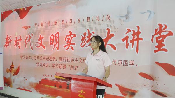 7月26日上午,服务队开展国旗下爱国主义宣讲活动。成员廖佩雯以江西抗日烈士方志敏同志的红色故事为主线,将方志敏同志的勇于奋斗、敢于牺牲、爱党爱国的精神传递给现场的每一位维吾尔族同胞们。