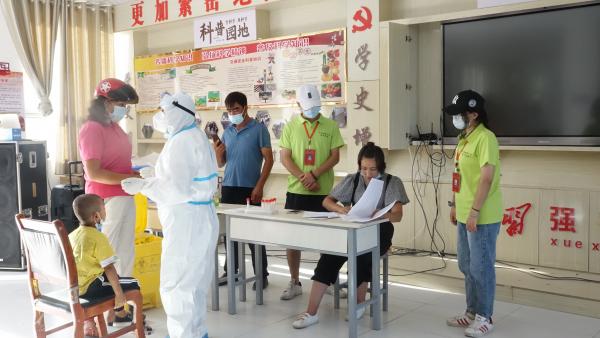 此外,服务队主动向新疆当地村委会提出参与疫情防控志愿服务。在核酸检测中,队员们帮助维持秩序、登记信息等,为当地疫情防控常态化贡献一份力量。