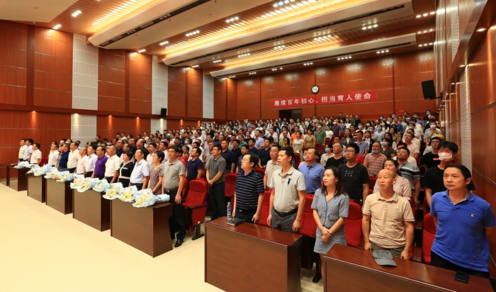 在全国人民热烈庆祝中国共产党百年华诞的特殊日子里,我们迎来了第37个教师节。9月9日,学校举行“赓续百年初心,担当育人使命”教师大会暨第37个教师节庆祝大会。校领导卢福财、邓辉、朱小理、刘小丽、阙善栋、欧阳康、顾有平、袁红林、李春根出席会议。会议由校党委副书记朱小理主持。校属各单位主要负责人、教师代表、2021年新进教师共计300余人参加会议。