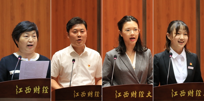 教师代表李秀香、刘贺、王梦颖发言,纷纷表示将更加恪尽职守,砥砺前行,为人民教师争光添彩,为实现中华民族伟大复兴中国梦尽一份绵薄之力。金融学院2018级学生曹芸芸代表在校学生向全体教师致以崇高的敬意和节日的问候。
