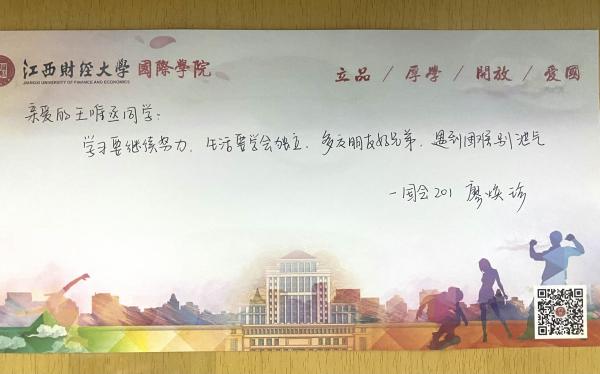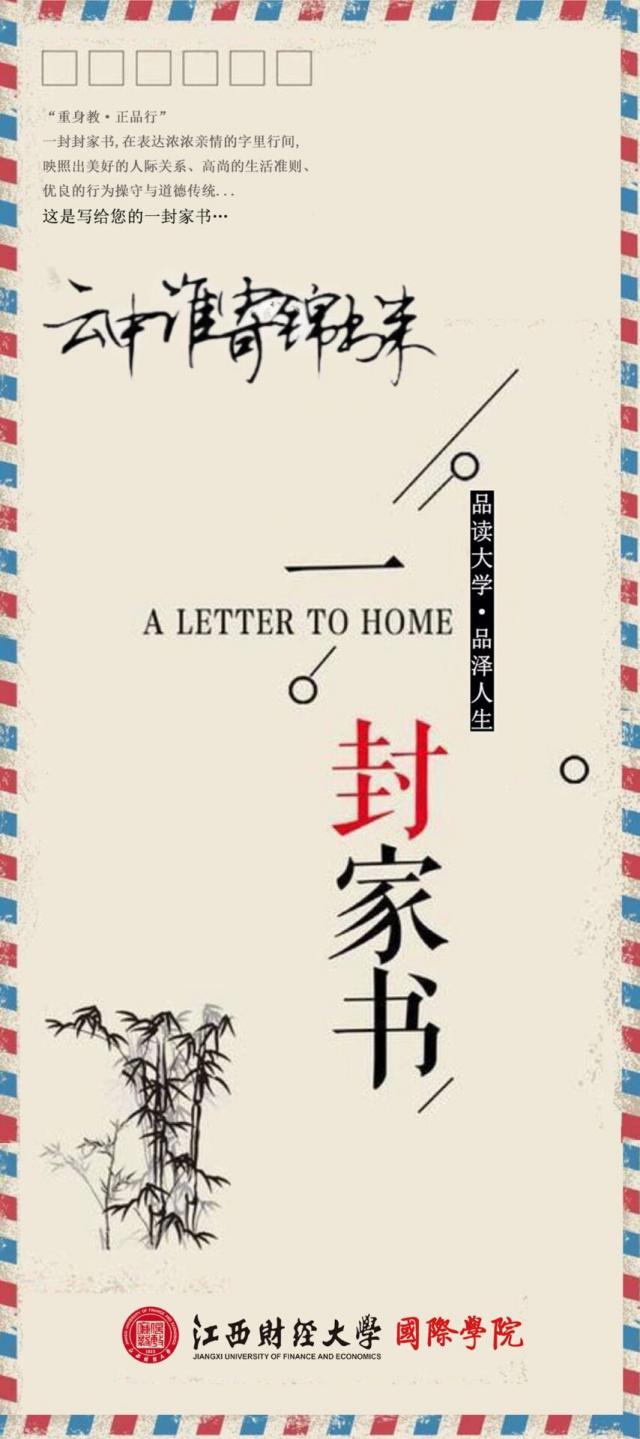 为了引领大学新生感恩亲情、传递思念、沉淀成长,国际学院2021年“品读大学•品择人生”活动于近日启动,学院在迎新点设置“一封家书”温馨小站,收取新生写的“一封家书”。新生可以用书信的方式表达对家人最真挚的感情,对老师最崇祯的感激,可以书写自己的爱国感悟,抒发自己的报国热情,并在活动结束免费提供统一寄送服务。