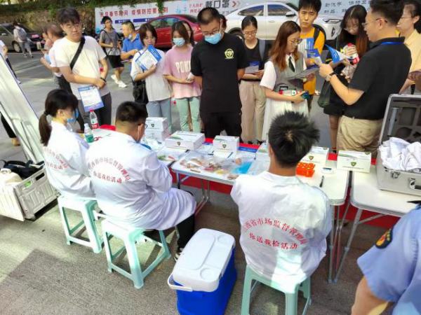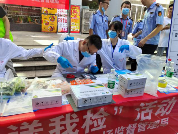 本次抽检围绕“米篮子”“菜篮子”,以百姓日常生活必需的米、面、油、肉、菜、奶、蛋等为重点食品安全检测对象,鼓励在校师生主动抽检、积极送检,对食品安全进行快速检测并公布检测结果。作为江西省重点示范性高校,我校积极配合省市场监督管理局与省食品安全报的抽检工作,选派15名校大学生自律委员会学生志愿者全程参与。