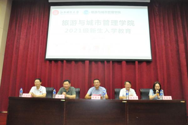 院长邹勇文从历史沿革、师资队伍、学科体系、科研服务、国际交流和人才培养等六个方面介绍学院的基本情况,希望同学们秉承“信敏廉毅”校训和“励志博学,经天纬地”院训,成长成才,寻梦筑梦于江财旅城。