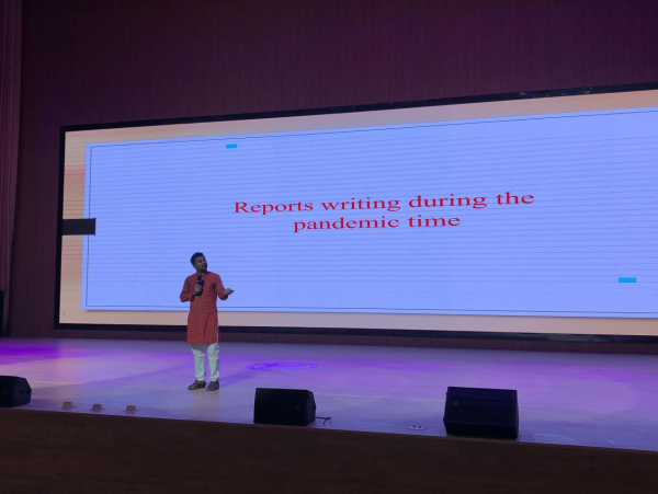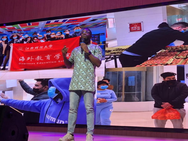留学生们以2人为一组,分别介绍他们国家的地理位置、气候环境、人文美食、旅游景点等,各色各样的食物、独具特色的民族服饰、美丽的自然环境让在场的学生惊叹不已。留学生吴迪和龙塔约分别以“我的抗疫记实”和“致敬英雄”为主题,分享了他们是如何在疫情期间,与江西财经大学无私奉献的老师们一同齐心战疫,如何利用自媒体和新闻媒体平台向世界讲好中国抗疫故事。