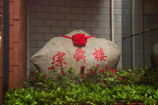 卢福财、刘小丽、裘志祺、张蕊共同为宗舜楼揭牌。“宗舜楼”在光辉下熠熠夺目,揭牌现场礼炮轰鸣。
