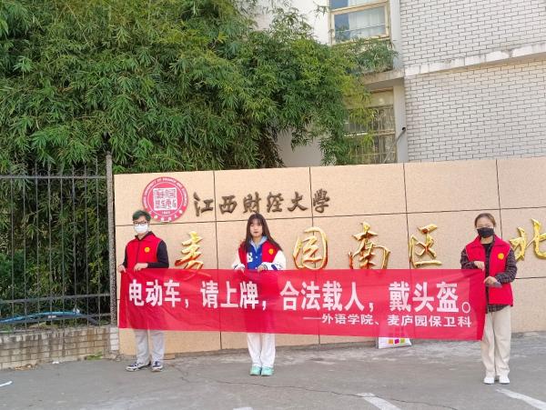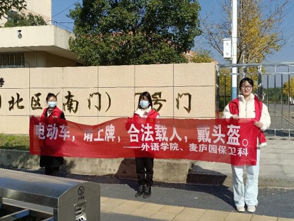 11月24日至11月27日期间,为了提高人们规范使用电动车的安全意识,向市民宣传使用电动车的注意事项。外国语学院开展了“举横幅,宣传规范使用电动车”的志愿活动。